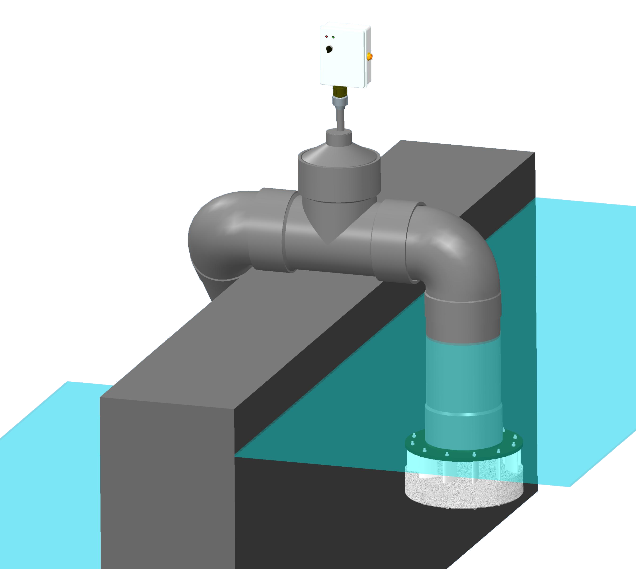 Lorsque l’installation est réalisée en siphon, l’amorceur permet d’allumer et d’éteindre la turbine. Il surveille en continue le bon fonctionnement du siphon.